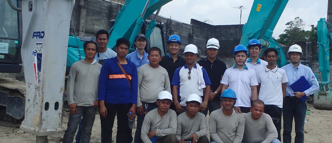 In March of 2018, a Furukawa hydraulic breaker, the Fxj225, was delivered to a construction site in Quezon City in Metro Manila in the Philippines. The customer for this hydraulic breaker was a developer in Philippines, one of the largest construction companies in the Philippines. The Fxj225 is being used to excavate bedrock to prepare the land for building houses on a housing construction site operated by the customer. "The Fxj225 is much quieter and doesn't shake as much as the previous breaker we were using from another company," said an operator from the customer. "So at first we were worried that it wouldn't provide us with the power we needed. But after a while, we realized that this breaker was heads and shoulders above the others in terms of getting the job done." The operator was surprised how good a job the Furukawa breaker did considering its low-noise, low-vibration specs. He had always believed about breakers that the louder they were and the more they shook, the more power they had, and the better job they did—a belief that was shared by most in the Philippine construction industry. But the Fxj breaker smashed this theory completely. Operators working with breakers are subject to long hours of loud noise and heavy vibrations. Furukawa wants to create an environment where operators can concentrate better by alleviating some of the burden on them. Our breakers are made with this goal in mind.